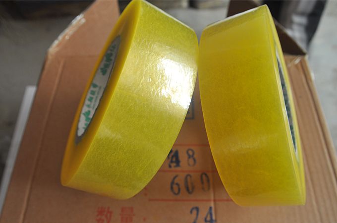 将封箱胶带对粘捏紧然后快速拉开,可以将一边的胶拉脱离,可以看到原膜纯度和透明度,最重要的是看到胶水厚度,如果没胶水被拉开或成点状拉开,这种胶水中一是有大量杂质,胶水没内聚力。封箱胶带在外观的比较下,上胶少,掺杂质的封箱胶带整卷的颜色很深,拉开之后封箱胶带透光度高。质量好的胶带整卷颜色与拉开后一道的颜色相差不大,因为好封箱胶带的有极强遮蔽性,不存在颜色叠加的现象。